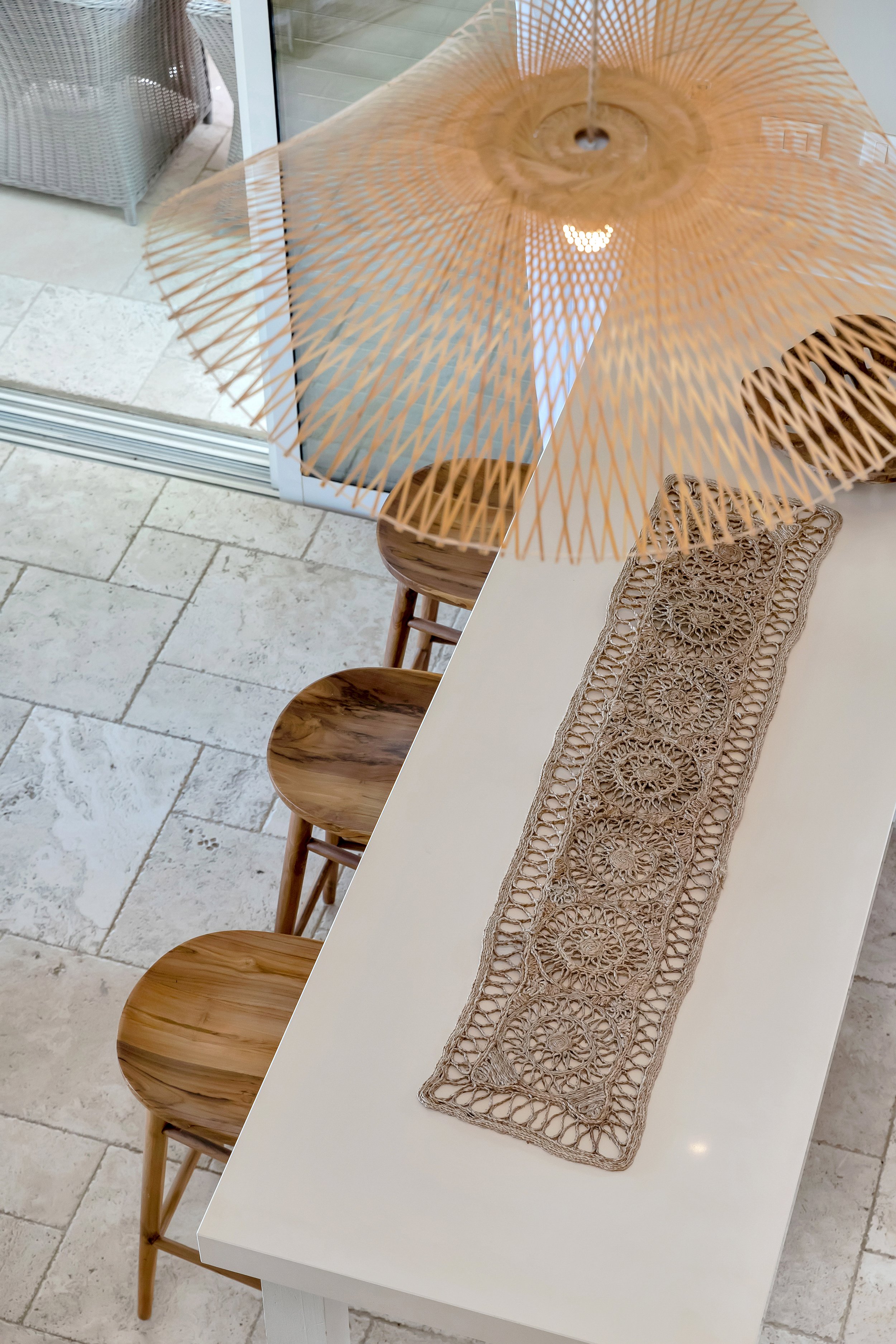 Bij de zitkamer is een open keuken met een ontbijttafel. Hier kan je genieten van een onbetaalbaar uitzicht op de lagune. De grote Amerikaanse koelkast zorgt ervoor dat je altijd genoeg ijsblokjes hebt om verfrissende drankjes en cocktails te schenken.